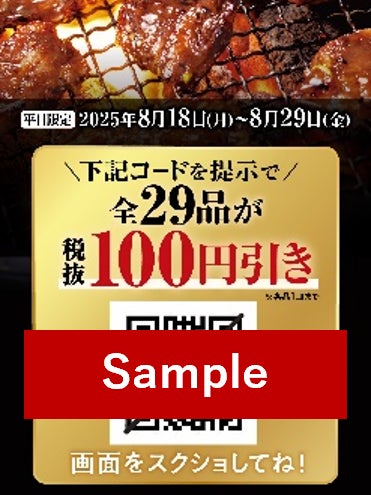 本キャンペーンでは、黒毛和牛カルビ・上タン塩・ハラミ・ホルモン・桜ユッケをはじめとした全29品が各1皿100円(税込110円)引き、全29品ご注文いただいた場合は総額2,900円引きとなります。この機会にぜひ、夏休み最後の思い出に牛角で焼肉をお楽しみいただき、9月からのエネルギーチャージとしてご利用ください。
