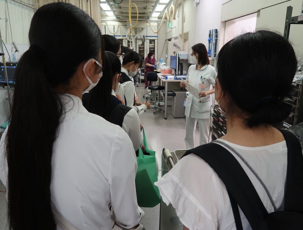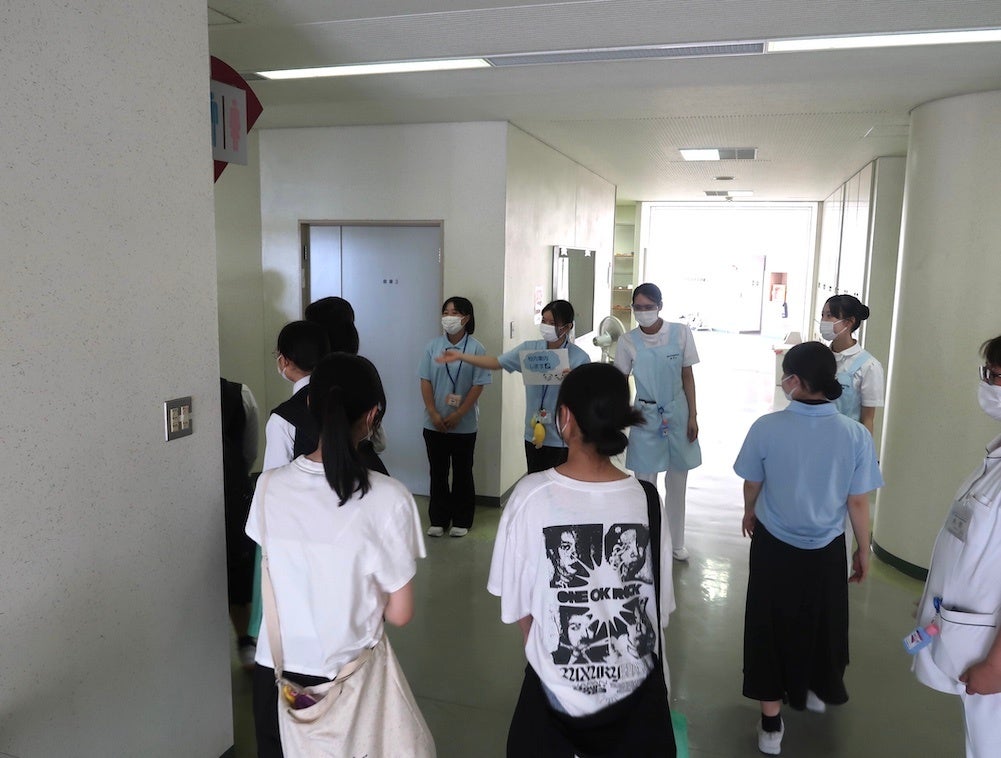 そして先ほどの渡り廊下を戻って、次は看護学校の校内見学がスタート。