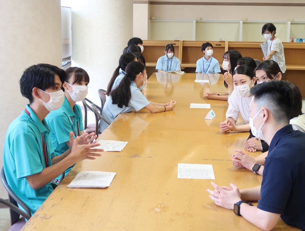 この日の参加者の方からは「看護師を目指していて興味があって来たが、学生さんたちが優しく語りかけてくれてうれしかった」「興味がある友人にもぜひすすめたい」という声が聞かれ、あちこちで熱心にメモを取る姿や、在校生と参加者が小グループで談笑する姿も多く見られました。