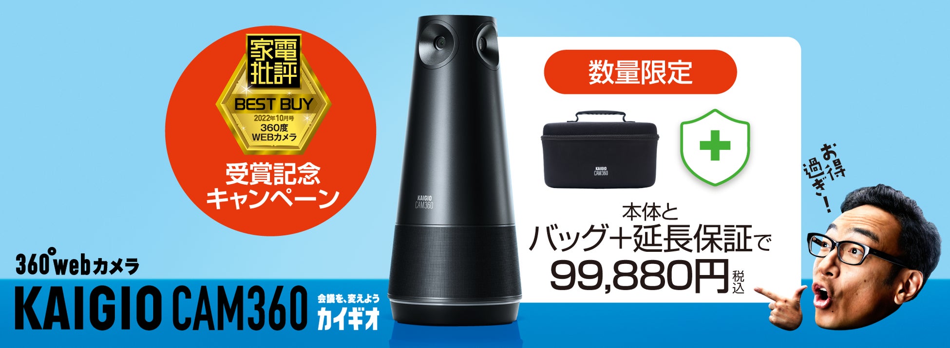 また本製品は情報誌「家電批評」(2022年10月号/株式会社晋遊舎発行)」の360度webカメラ部門で1位を受賞いたしました。これを記念して、同日より、本製品の本体、収納バッグ、ワイド延長保証サービス(3年)をセットでお得にお求めいただける「家電批評ベストバイ受賞記念キャンペーン」を実施いたします。