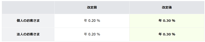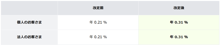 円定期預金金利につきましても改定をおこなう予定です。改定後の金利および改定日が決まり次第、当社WEBサイトにてお知らせします。