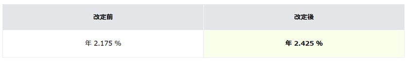 金融情勢の変化などにより金利水準の見直しを行う場合がございます。最新の金利は当社