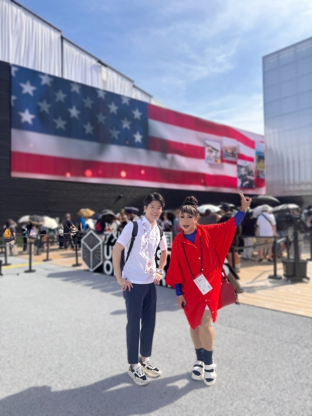 (実は生放送前に、アメリカ館へ訪れていた2人。テンションあがりすぎて、大はしゃぎ!)