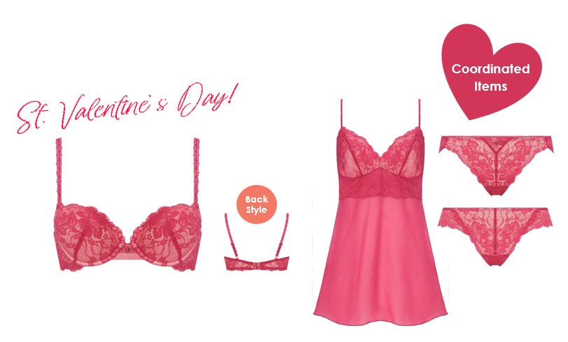 タンガショーツやキャミソールなどのコーディネートアイテムも、バレンタインコレクションならでは。この時季だけの甘くロマンティックな気分を、ランジェリーでお楽しみください。