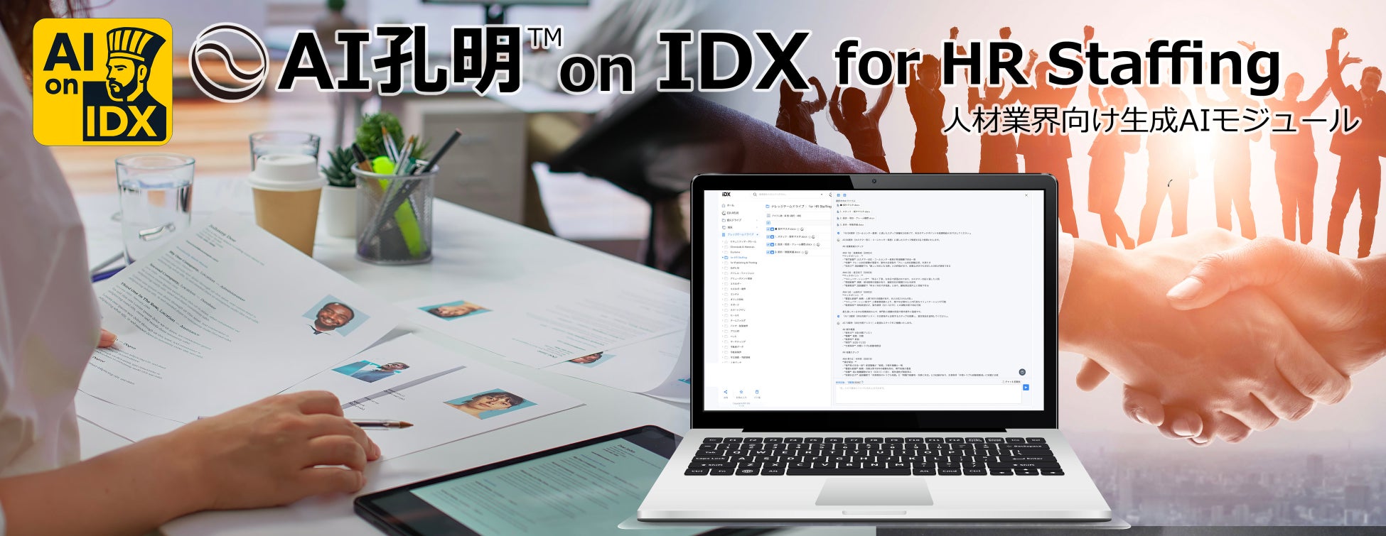 企業データとAIの利活用カンパニー、AIデータ株式会社(本社:東京都港区、代表取締役社長 佐々木隆仁 以下AIデータ社)は、人材業界向けに次世代業務支援生成AIモジュール「AI孔明™ on IDX for HR Staffing」の提供を開始いたします。