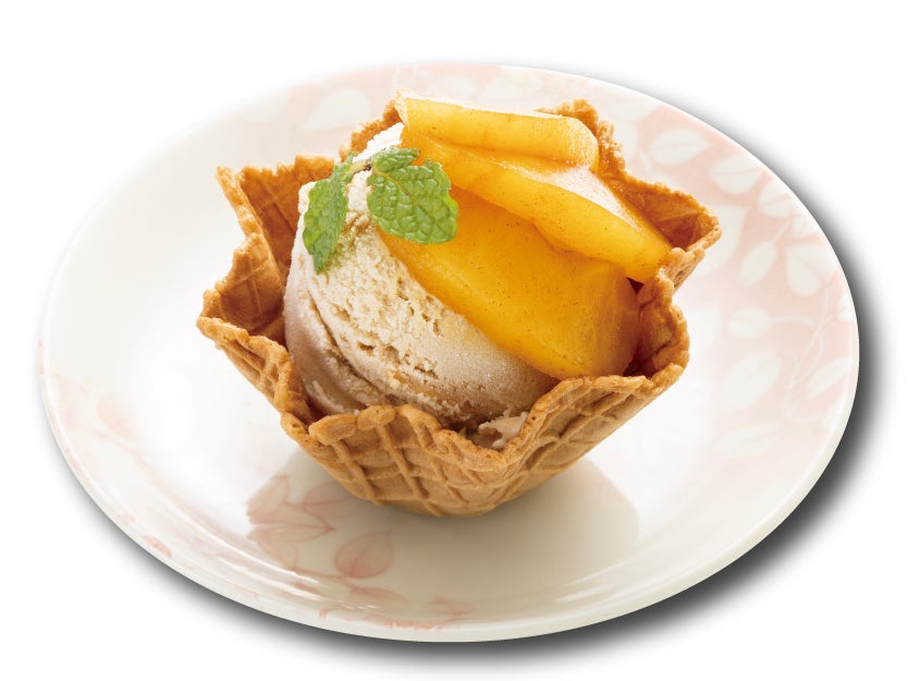 キャラメルアイスにシナモン香るカラメルりんごを添えました。