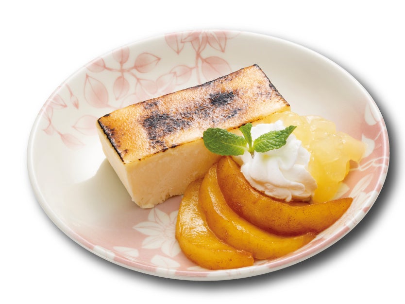 キャラメリーゼした濃厚なカタラーナにカラメルりんごと果実入りふじりんごソースを添え飽きのこない逸品です。