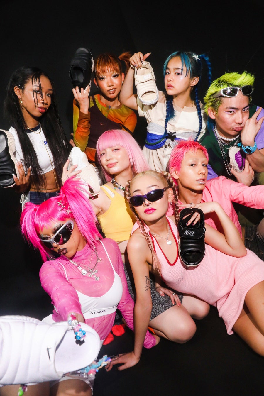 ストリートのファンが多いNIKEの隠れた逸品ADJUST FORCE から、ウィメンズ仕様にアップデートされた “ADJUST FORCE SANDAL”が6月3日(土)に登場します!! 美脚効果も期待できる厚底ミッドソールを備えたボリューム感のあるシルエットに、取り外し可能なストラップパーツを搭載。ストラップパーツは2色付属されており、その日の気分やコーデに合わせて付け替えたり、取り外してスライドサンダルとしても使えるという3つの表情を楽しめる魅惑的なデザイン!この夏、自分らしくキメたい間違いなしの一足です。ヴィジュアルイメージには、近年人気を博している次世代型イベントきゅんですのディレクターでもあり数々の東京トップナイトクラブなどでもDJとして活躍しているN2さん、きゅんですのレギュラー出演をしているMANONさんをはじめ”GROOVY(イケてる)”なメンバーで、atmos pinkらしいY2Kを彷彿させる世界観を表現。
