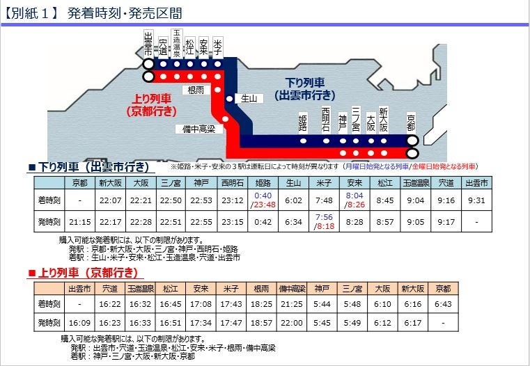京阪神エリアからだけでなく、山陰・岡山エリアからもご利用可能です。購入可能な発着駅は別紙1をご確認ください。