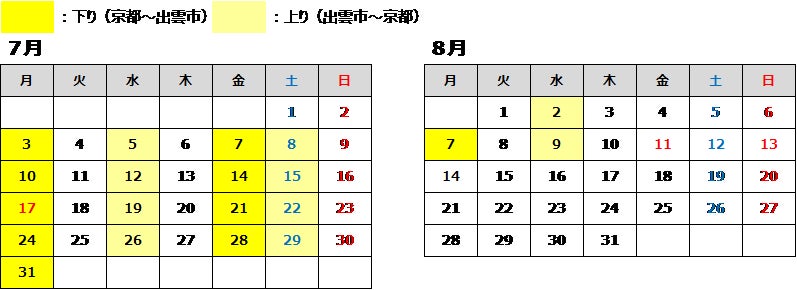 WEST EXPRESS 銀河(山陰コース) 2023年運行分 ※始発駅基準