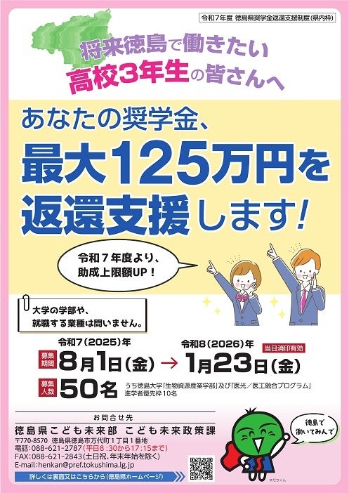 徳島で働きたい皆さんの奨学金の返還を支援します!