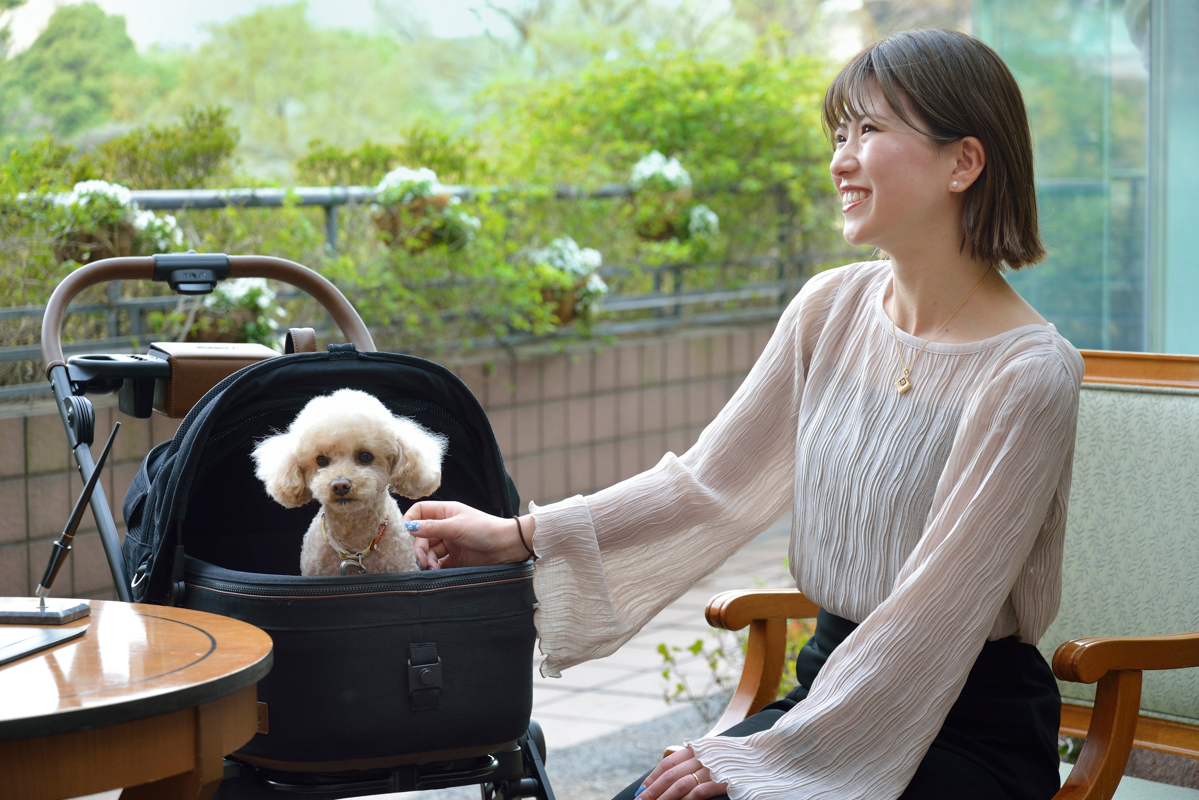 エグゼクティブラウンジのテラスエリアでは、ペット専用カート 「TAVO」をお貸出しし、テラス席でチェックイン・チェックアウ トのお手続きをなさっていただけます。