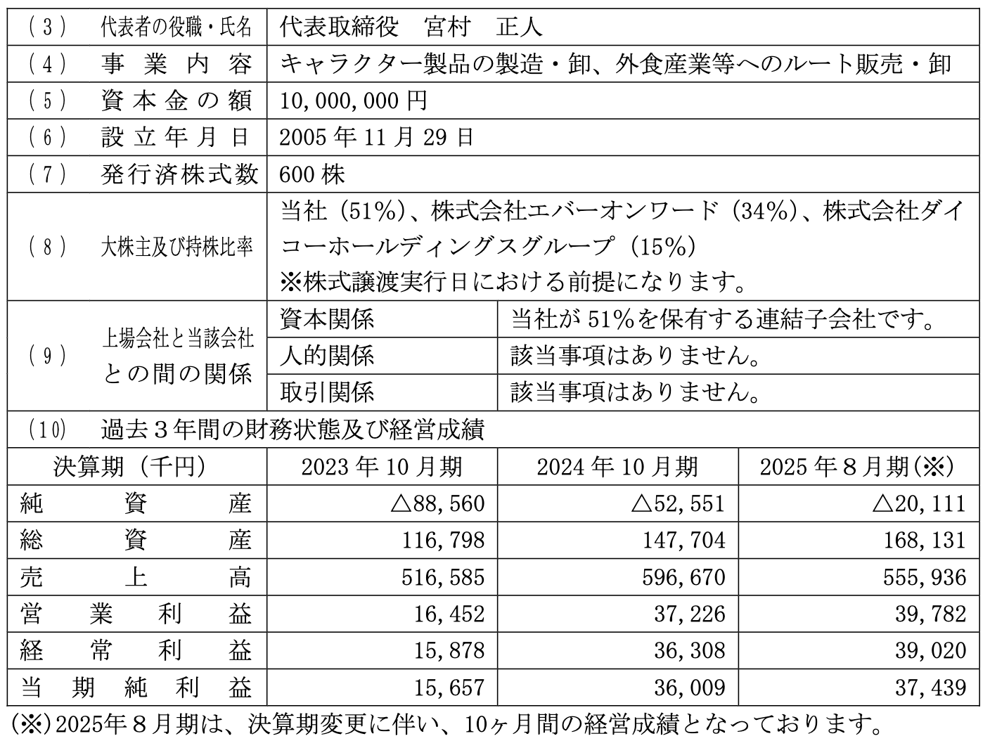 ー」)より、カプセルトイ事業を行うドリームプラネット株式の譲渡についての提案があり、株式