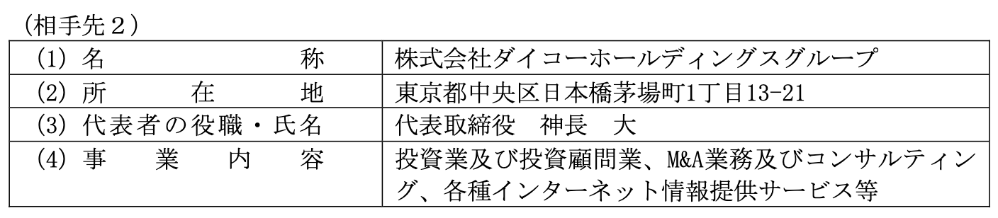 ード」)及び業務提携先である株式会社ダイコーホールディングスグループ(以下、「ダイコ