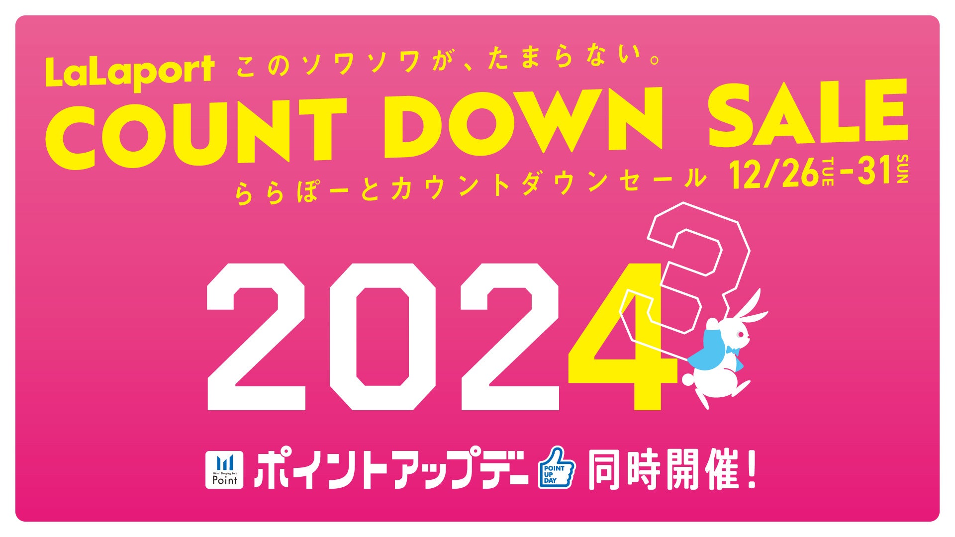 さらに、今季注目のアイテムをセール価格でお求めいただける「ららぽーとカウントダウンセール」を2023年12月26日(火)~12月31日(日)の期間で実施します。年末もおトクにお買い物ができる、この機会をぜひご活用ください。
