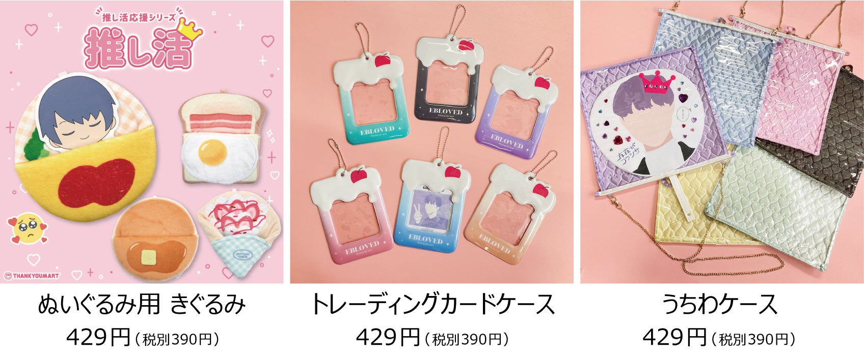 店内商品は、390円を中心としたリーズナブルな価格設定です。ハーフサンキュー(税抜195円)やダブルサンキュー(税抜780円)などの新しい価格も導入し、手に取りやすい価格を追求しています。