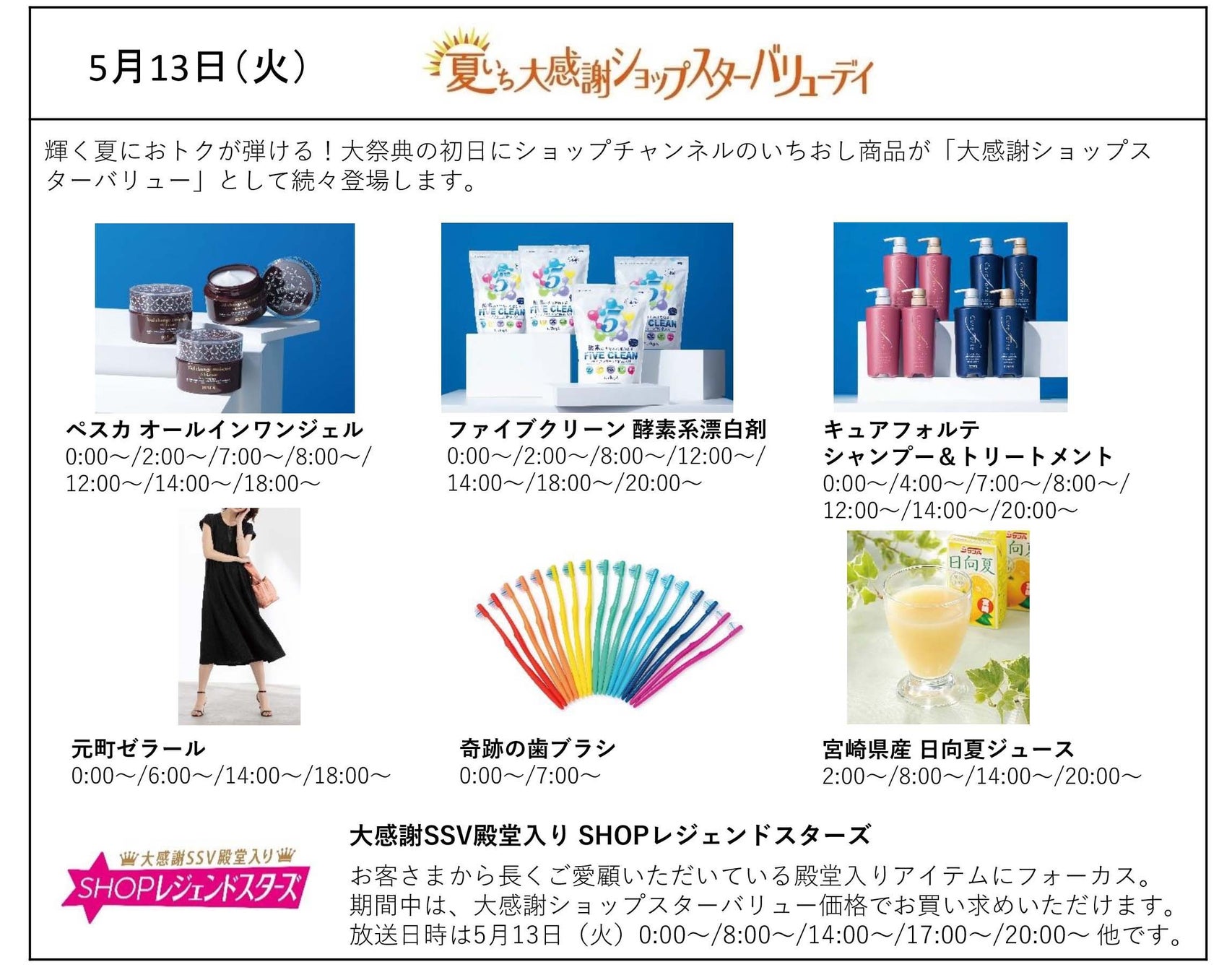 ~5月13日(火)は「夏いち大感謝ショップスターバリューデイ」5月14日(水)は「初ショップスターバリューデイ」を放送~