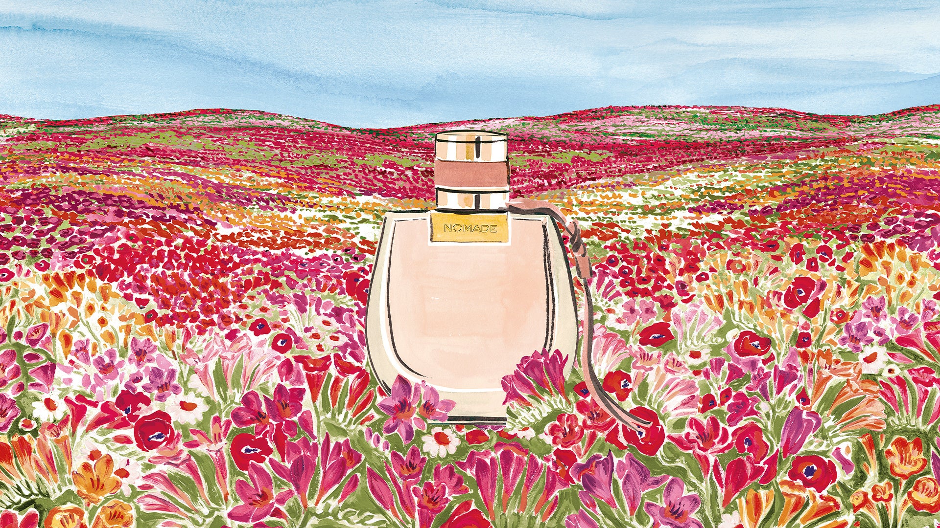 2023年のボックスデザインは、満開の花にかこまれ、どこまでも続く青い空が織りなす解放感を、クロエらしいエフォートレスエレガンスな雰囲気でイラストが描かれています。