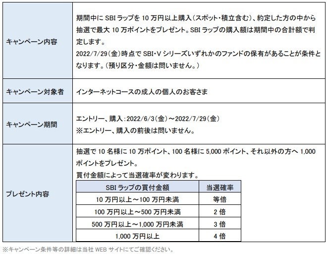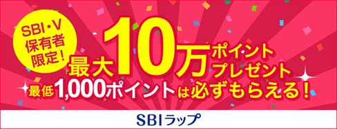 ④ 「SBI・V保有者限定!SBIラップ購入で最大10万ポイントプレゼント。最低1,000ポイントは必ずもらえる!」キャンペーン実施中