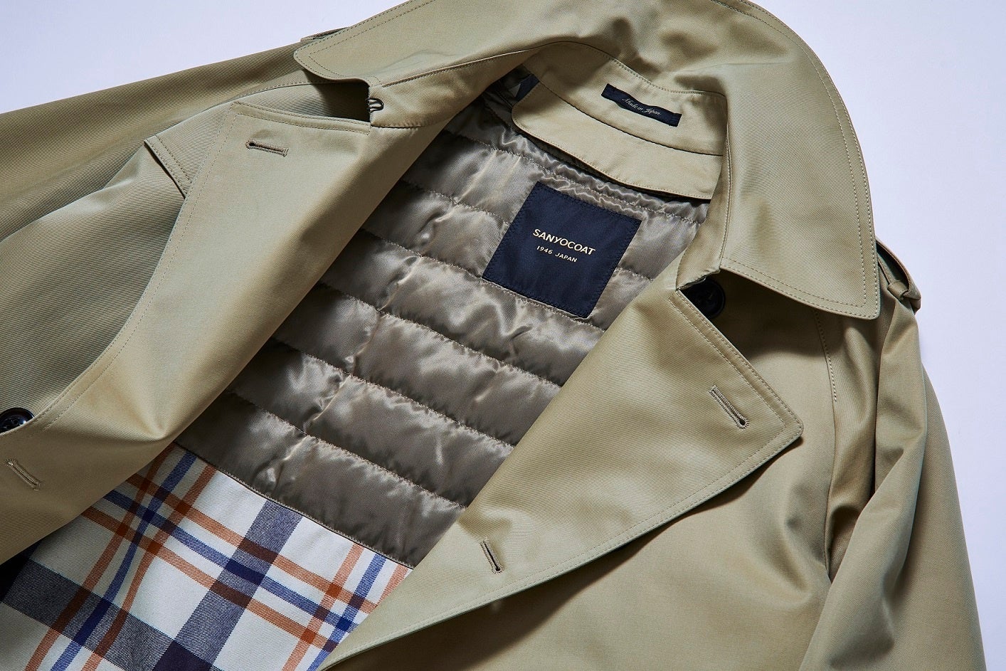 当社の祖業アイテムであるコートにおいて、自社工場「サンヨーソーイング 青森ファクトリー」のコート専業53年となる蓄積されたノウハウを活かし、今後各ブランドの顔となっていくコートを開発。「サンヨーソーイング 青森ファクトリー」ではR&D機能を有するコートのエキスパートとして、工場創業当時から得意とするトレンチコートに加え、ダウンコートや防水仕様コートの生産を可能とするために、ダウンの充填機をはじめ止水テープを貼り付けるシームシーリング加工を施す機械、ほか複数の設備投資を進めており、品質を備えた新たなコートの提案を図っています。