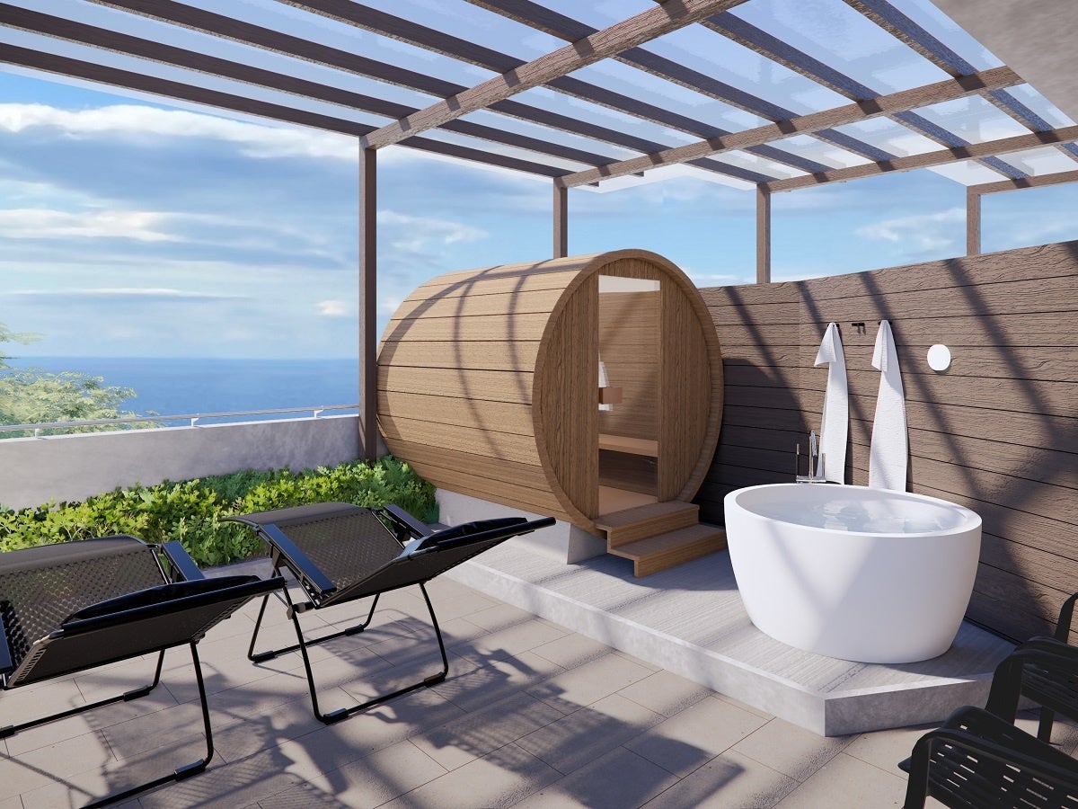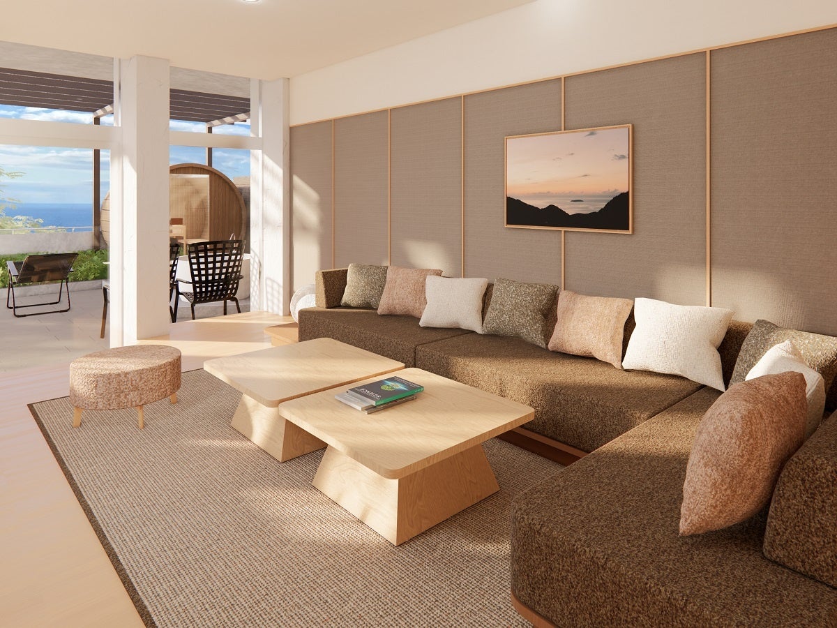 新客室はテラスにバレルサウナを完備。3室それぞれ内装や広さが異なる仕様で、ラグジュアリースイートタイプの客室は広さ89㎡、6名様までご利用いただけます。カップルやご友人同士、グループ旅とニーズに合わせて客室タイプをお選びいただけますので、リフレッシュ旅にぜひご利用ください。