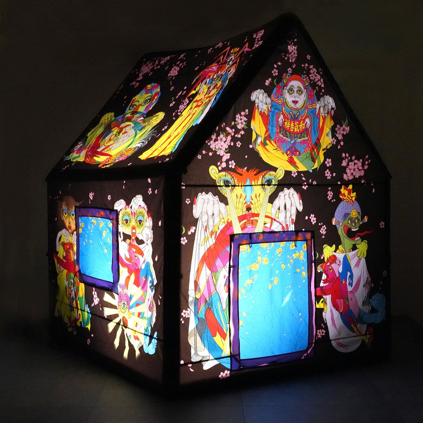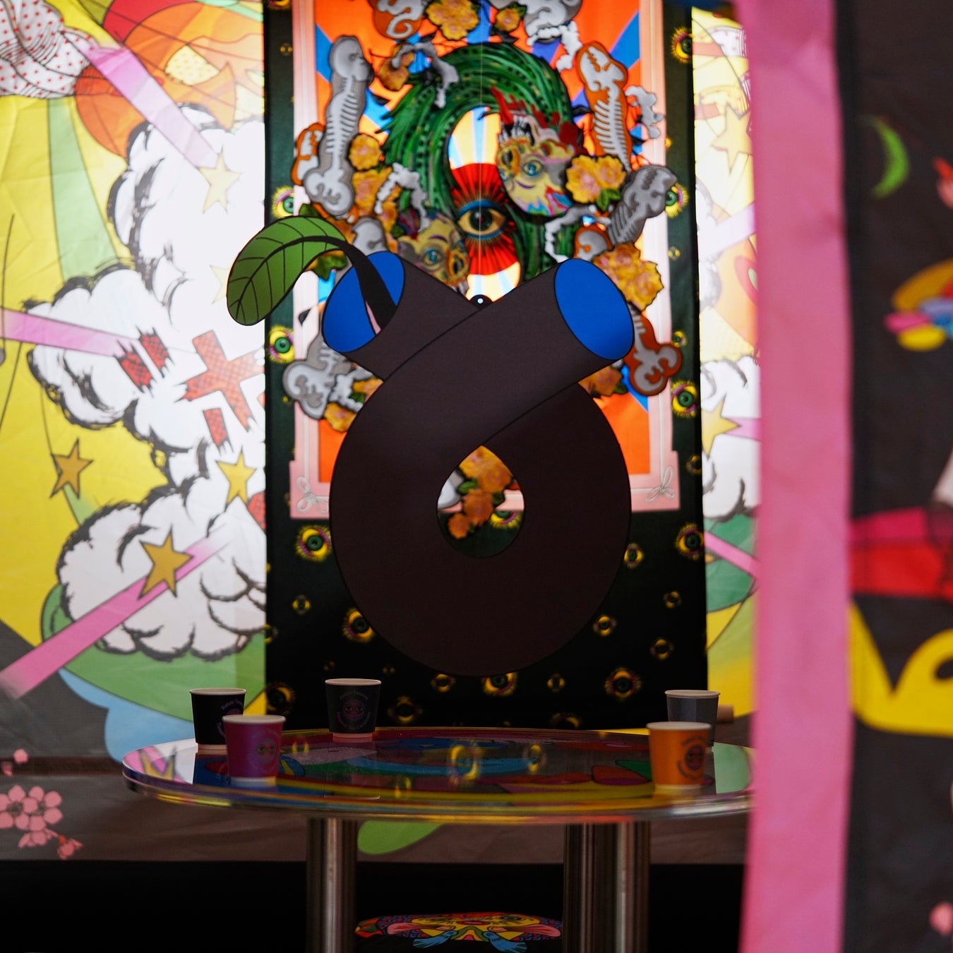 田名網敬一×赤塚不二夫「TANAAMI!! AKATSUKA!!」の最新作であるテントの茶室を展示します。