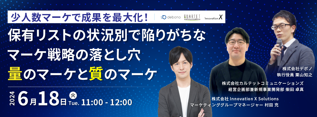 【6/18(火)オンライン開催】少人数マーケで成果を最大化!保有リストの状況別で陥りがちなマーケ戦略の落とし穴 「量」のマーケと「質」のマーケ