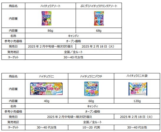 1975年に誕生した「ハイチュウ」は心地よい食感とジューシーな味わいが楽しめるソフトキャンディで、日本だけでなく広く海外でも親しまれており、現在は世界30か国以上で販売しています。この度、”50CHEW(周)年”というアニバーサリーイヤーを記念して、今まで培ってきた当社の技術を最大限に駆使して、「ハイチュウ<王道ミックス>」を開発いたしました。またグローバルブランドとしてさらに世界観の統一を図るため、既存商品のパッケージデザインをスタイリッシュなデザインにリニューアル致します。新しいデザインにはハイチュウらしい遊び心のある仕掛けもご用意しております。これからも「ハイチュウ」は50CHEW(周)年を盛り上げて、世界中のお客様に笑顔をお届けしてまいります。