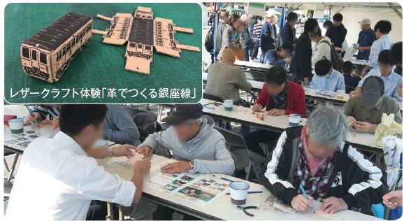 このうち「浅草、旅するトーク」では、エーラウンド実行委員長・川島様に、「革とモノづくりの街 奥浅草」への想いを語っていただくとともに、昨秋開催された「浅草エーラウンド2018秋」にてご好評をいただいたオリジナル・レザークラフト体験キット「革でつくる銀座線」の制作体験を、事前予約制30名様限りでご用意しております。