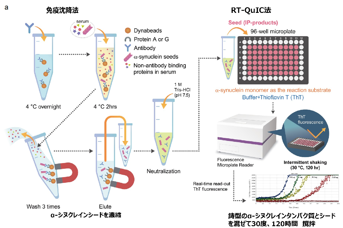 α-シヌクレイノパチー患者血清でRT-QuIC法と免疫沈降法(IP)とを組み合わせたIP/RT-QuIC法を開発