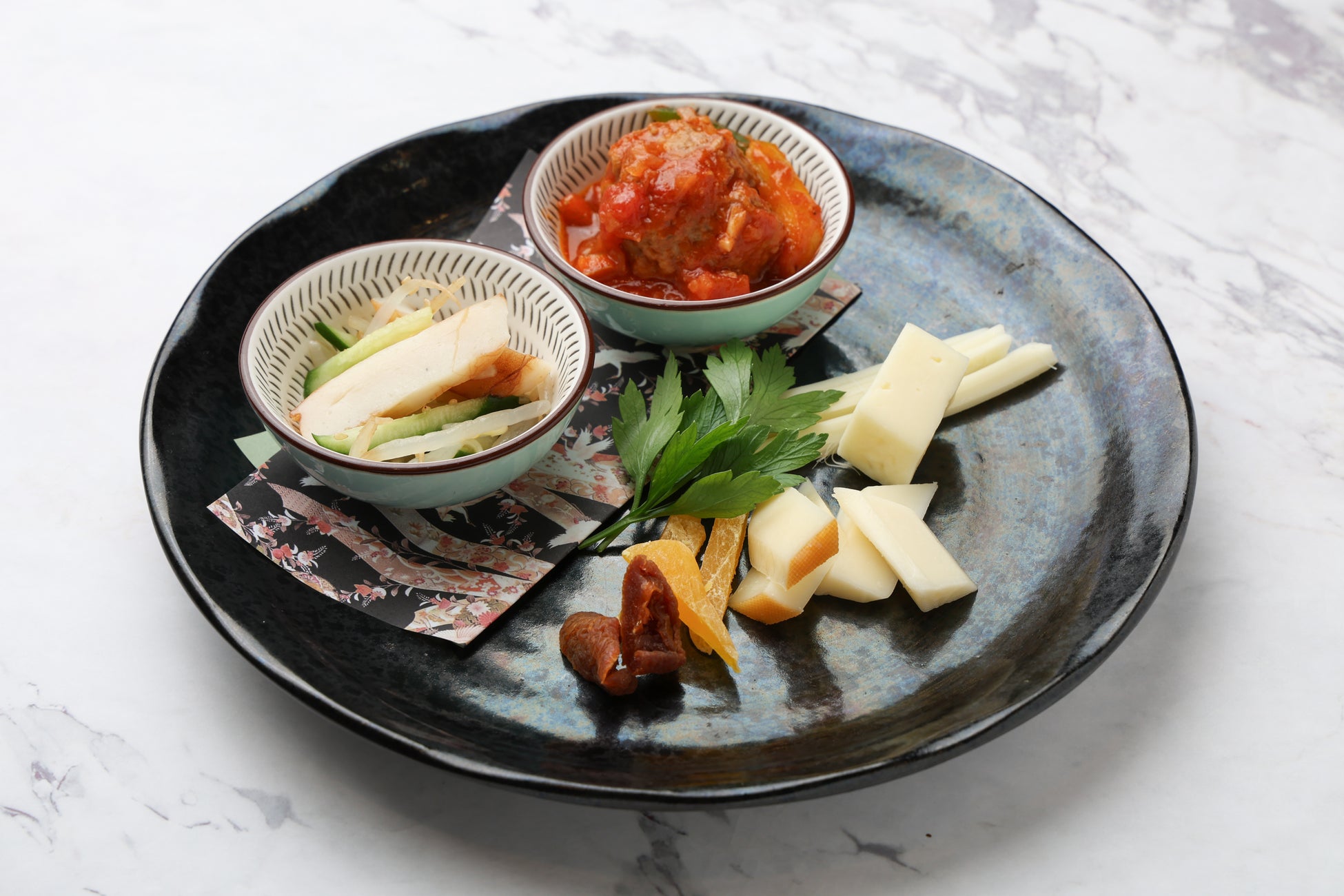 このたび、宮城県(仙台・宮城観光キャンペーン推進協議会)と連携し、宮城県酒造組合に加盟する4つ酒蔵から日本酒1杯と、宮城県の食材を使用した料理3品をセットにした、「みやぎガストロノミー3品セット 宮城の日本酒(90ml)付」を提供します。タイプの違う4種の日本酒から1杯を選び、宮城県の特産品である、蔵王チーズ、漢方牛・漢方豚、名物笹かまぼこを使用した料理3点を、ペアリングしてお楽しみいただけます。
