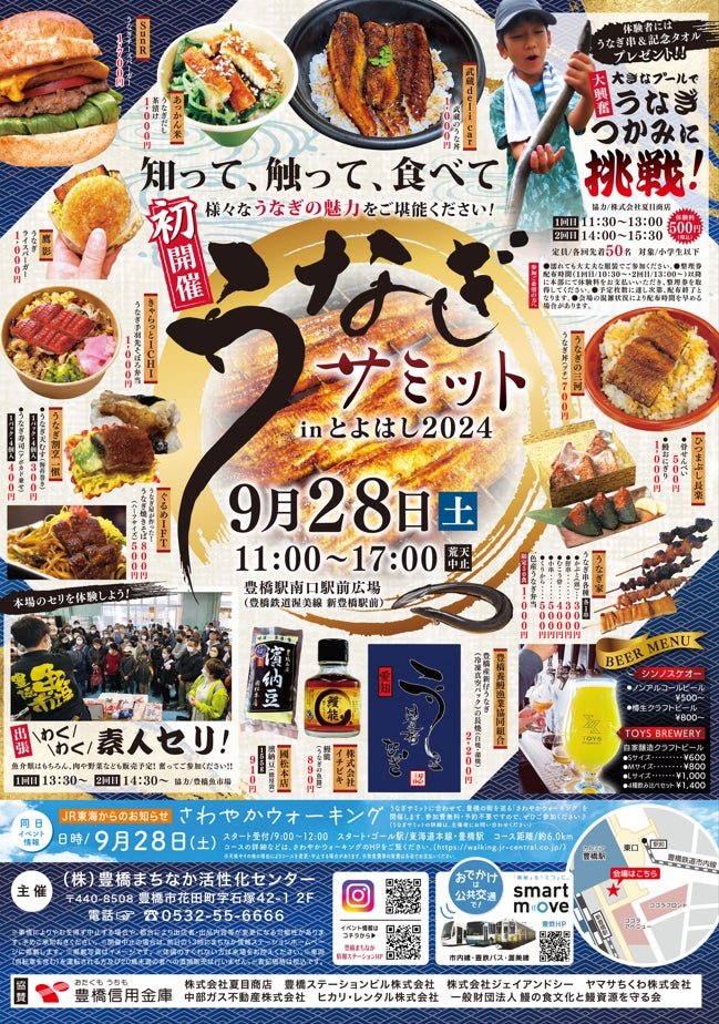 同日にはこちらのうなぎフェスに合わせ、豊橋の街を巡る「JR 東海さわやかウォーキング」も開催されます。参加費は無料、予約は不要です。豊橋駅周辺のまちなかのうなぎ屋さんもぜひ歩いて巡ってみてくださいね!