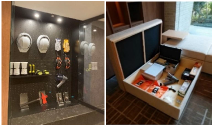 有事の際の在宅避難に向けた適切な初動対応が行えるよう、防災倉庫を裏動線の倉庫に設置するのではなく、日常で利用する共用部に防災備品を「しまう(設置)」・「見せる(ディスプレイ)」を一部物件で設計し、実施。