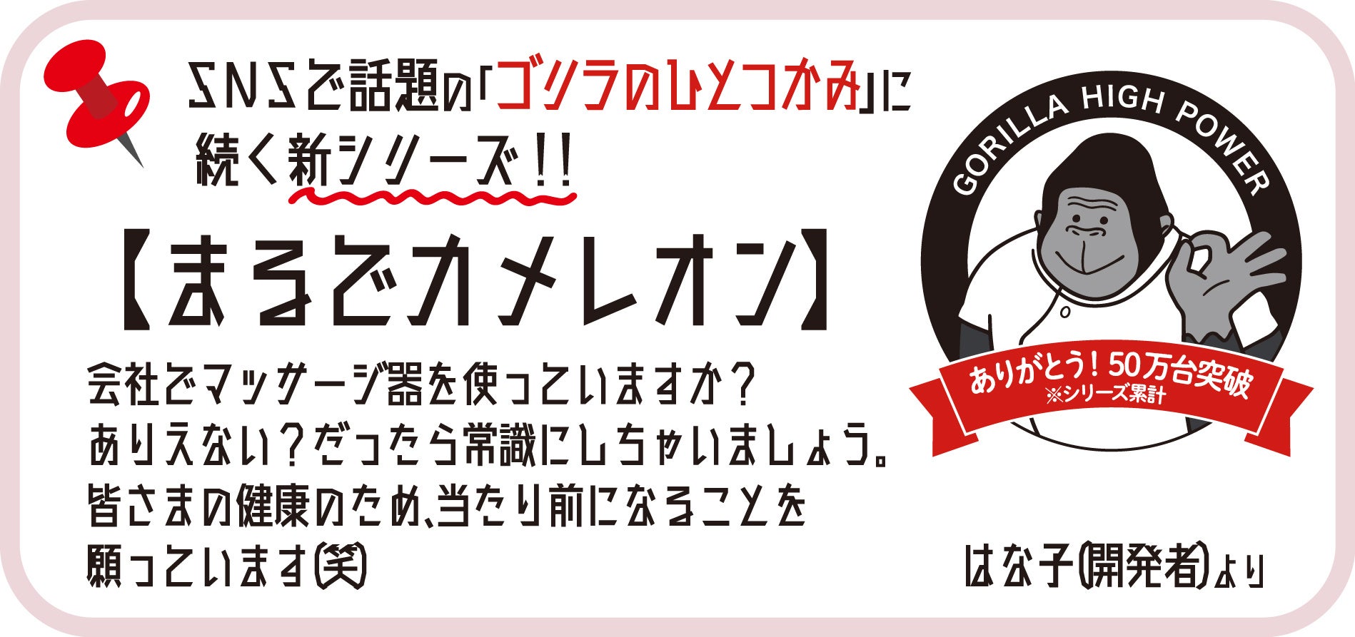 本製品は健康家電「ゴリラのハイパワー」に続く新シリーズ、「まるでカメレオン」第1弾の製品です。「ゴリラのハイパワー」ではふくらはぎや、足裏をケアする製品を展開してきました。「ゴリラのハイパワー」シリーズでは、今までに健康家電を試したことのない開発担当者が、同じように健康家電を試したことがない方でも手に取っていただきやすいように価格やネーミングにこだわり、消費者に支持されました。