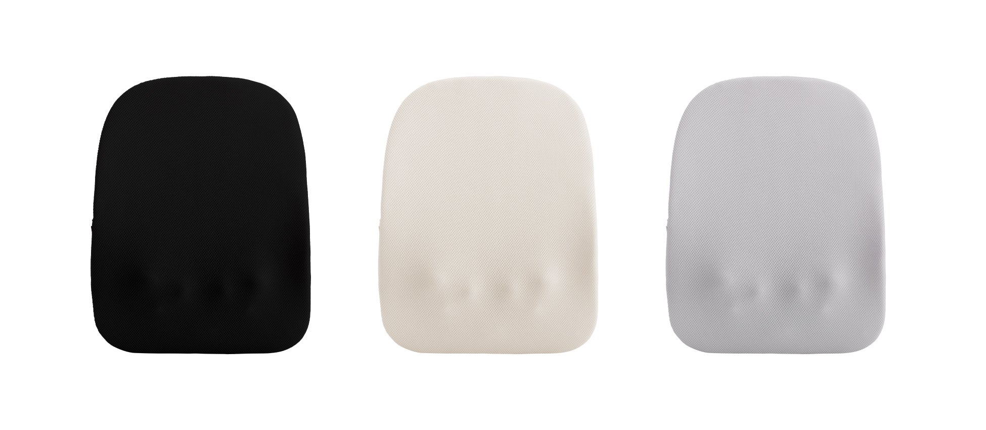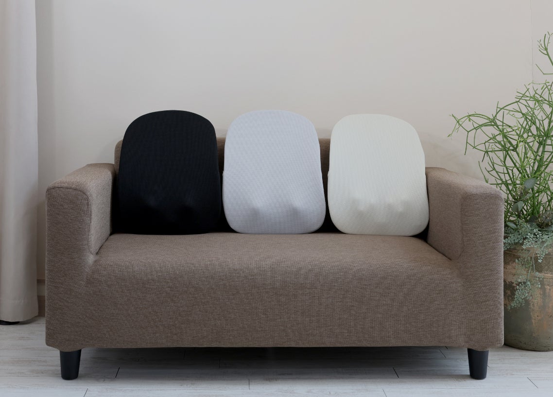 本製品はデスクワークでこっそり使ってほしいと考え、オフィスチェアになじみやすいブラック、在宅ワークの方に向け、インテリアになじむアイボリー、グレーの3色展開です。