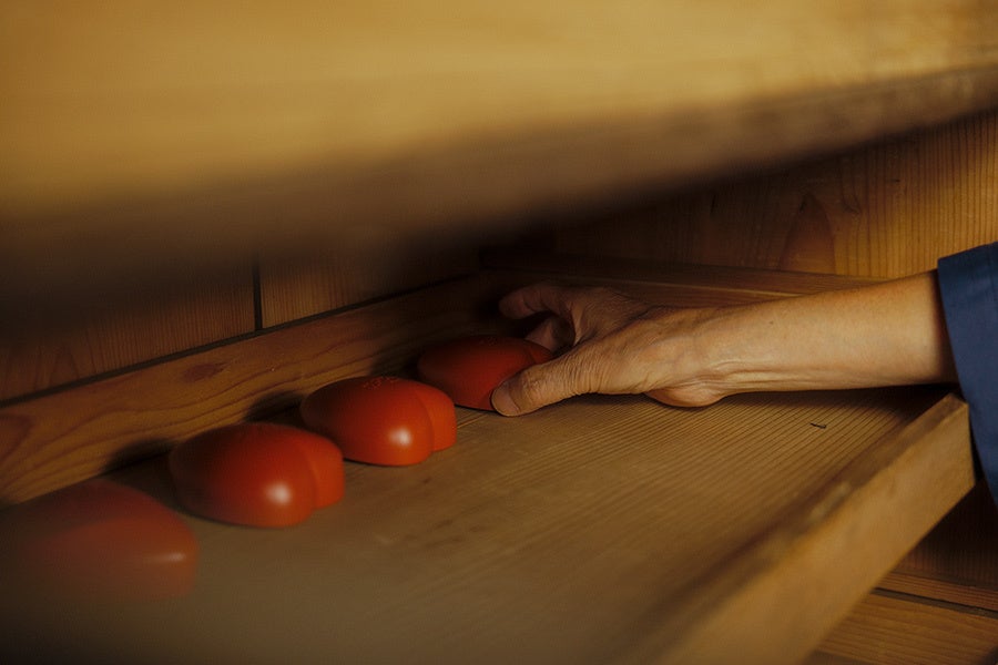 手との摩擦で表面は磨かれ、朱赤はより鮮やかに、艶は透明感が増していきます。