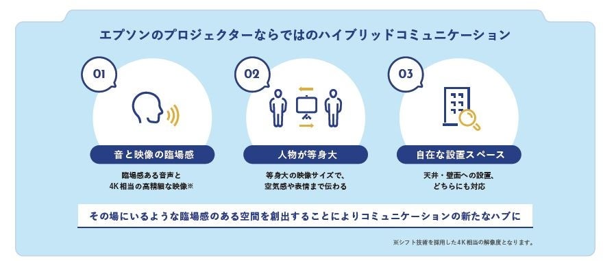 働き方の多様化により、コミュニケーションの分断や生産性の低下などが課題になっています。働く場所が分散しても一体感・臨場感が必要な会議において、エプソンはプロジェクターならではの「ハイブリッドコミュニケーション」による新しい働き方を提案しています。