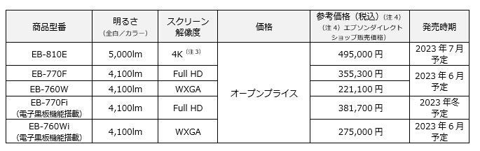 (注4)上記の参考価格はエプソンダイレクトショップ(エプソン直販サイト)での販売価格(2023年5月11日現在)であり、各販売店での販売価格を指示・拘束するものではありません。各販売店における販売価格は、各販売店にお問い合わせください。