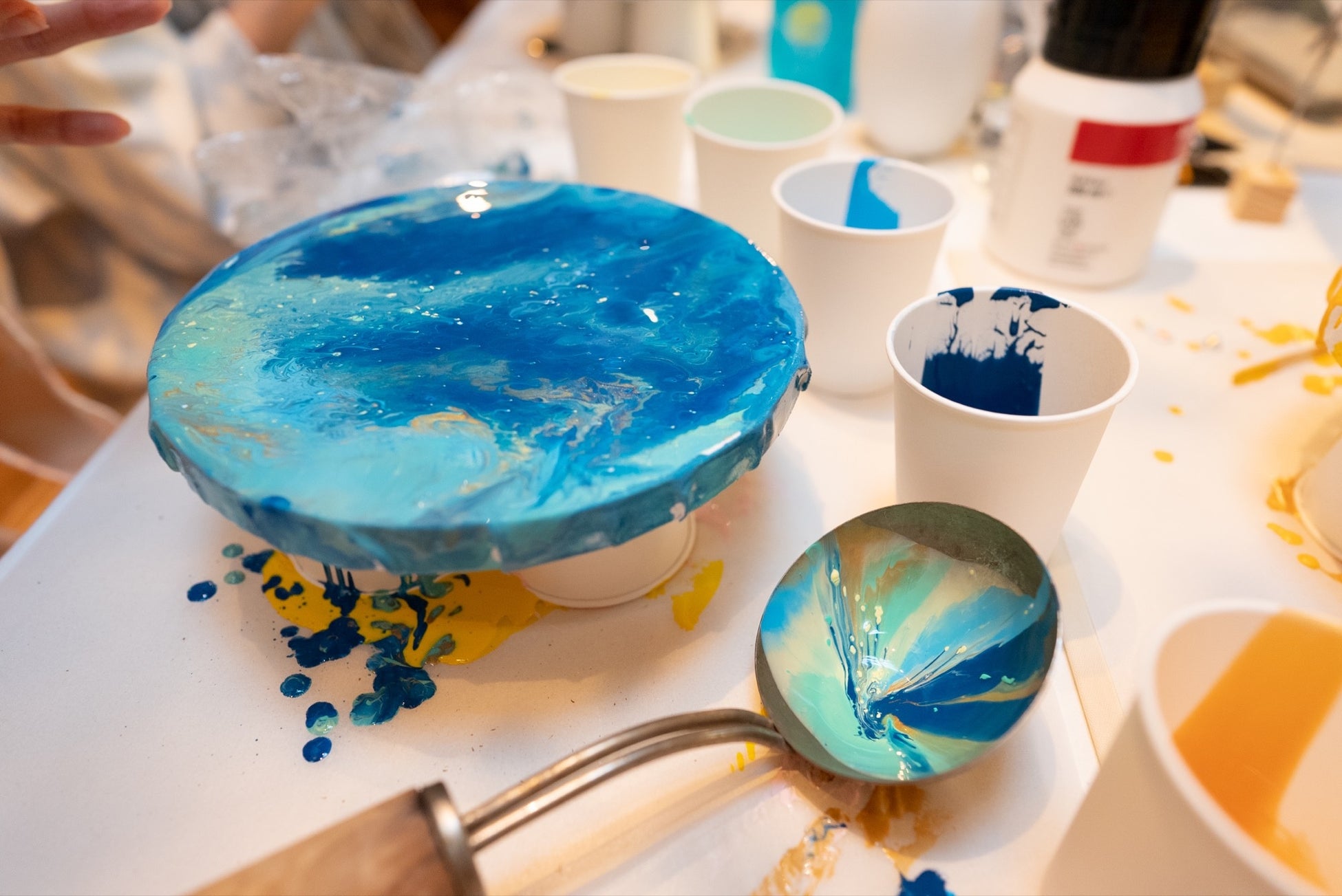 <ワークショップ>柄杓で絵の具をたらす「ロウリュアート」を体験&お持ち帰り