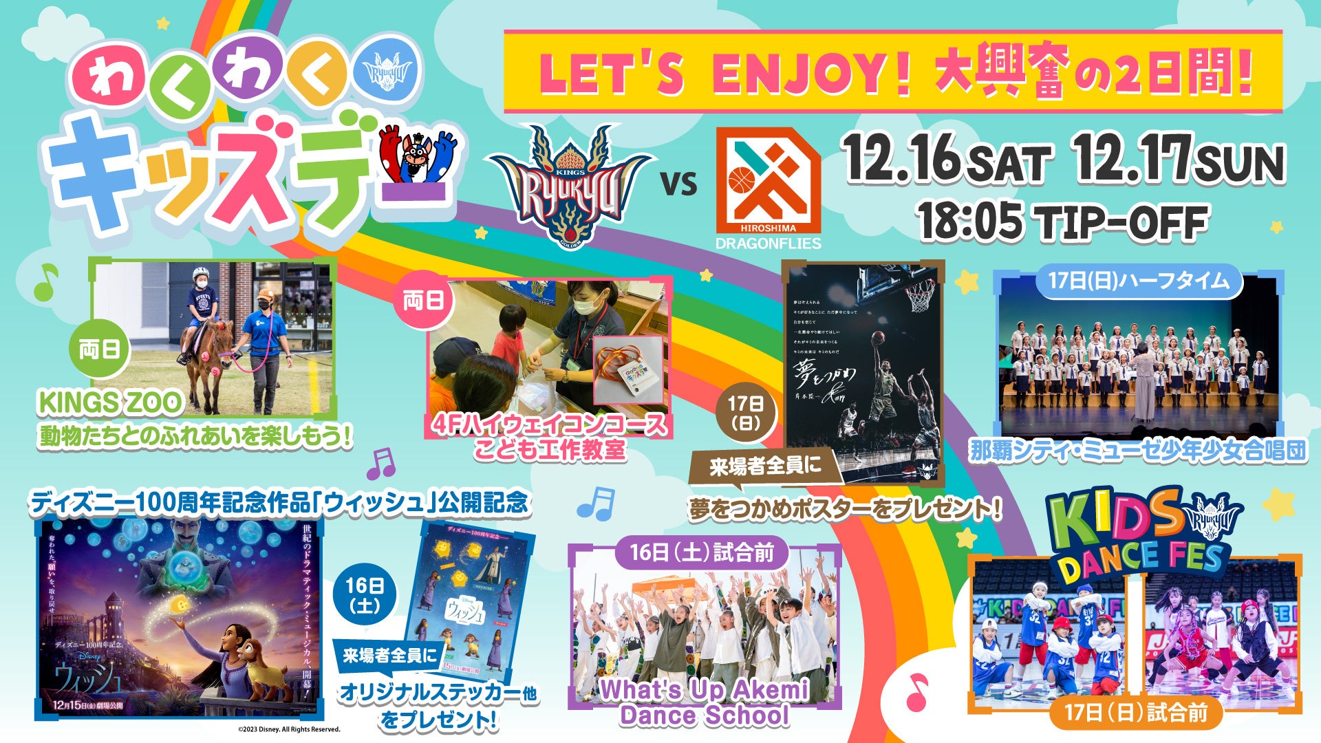 12月16日(土)、17日(日)の広島ドラゴンフライズ戦は、家族みんなで楽しめる「わくわくキッズデー」を開催します。
