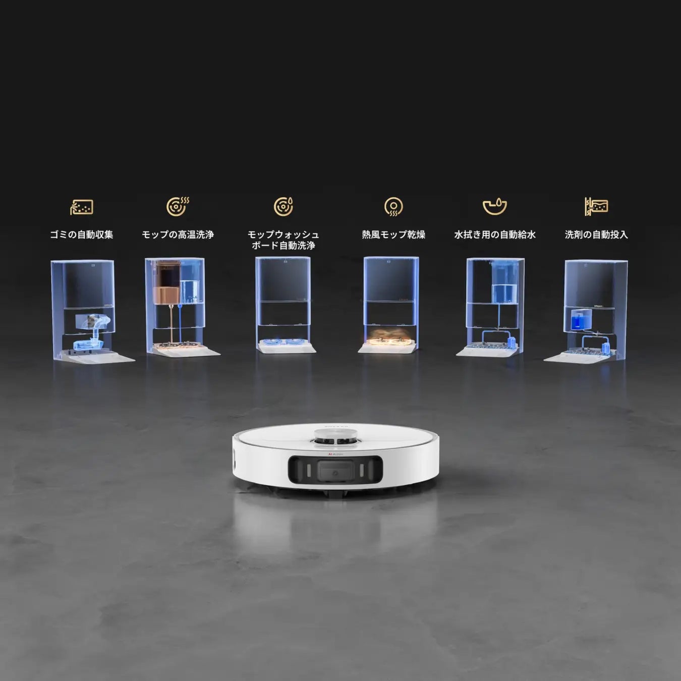 掃除後のお手入れが驚くほど簡単に!ゴミ収集やモップ洗浄など、6way全自動ベースステーション搭載
