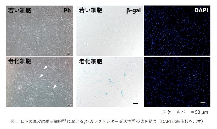 ※3 β-ガラクトシダーゼ活性:染色法で検出可能な酵素活性の一つで、老化細胞で増加するため細胞の老化を示す指標の一つとされる