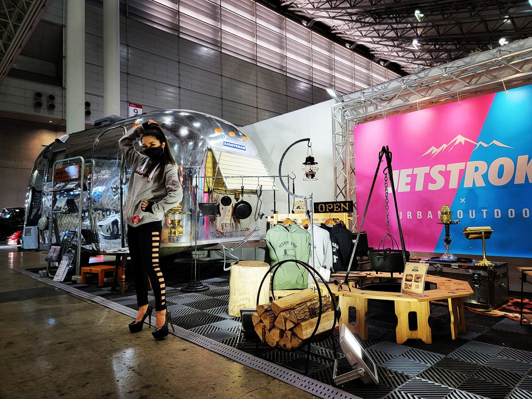 またAMG GTとは対照的に、古き良きアメリカをプンプンと感じさせるヴィンテージトレーラー「エアストリーム」もブース内に展示。これは我々ジェットストロークが20周年を記念して立ち上げた新規プロジェクトの一環で、アメリカ・ユタ州に拠点を設け、全米を旅しながらエアストリームをハントし、日本全国に届ける新たな挑戦が始まります。その第一号車として昨年末ギリギリに日本に到着したのが1966年式エアストリームCARAVEL 16ft。