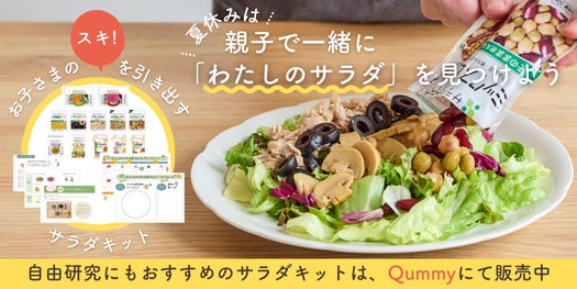 このイベントで使用した食育キットは、ご自宅でも体験できます。食材の味見をしながらサラダの設計図を描き、世界に一つの「わたしのサラダ」を作ることができます。野菜を食べるきっかけづくりや夏休みの自由研究にも最適です。