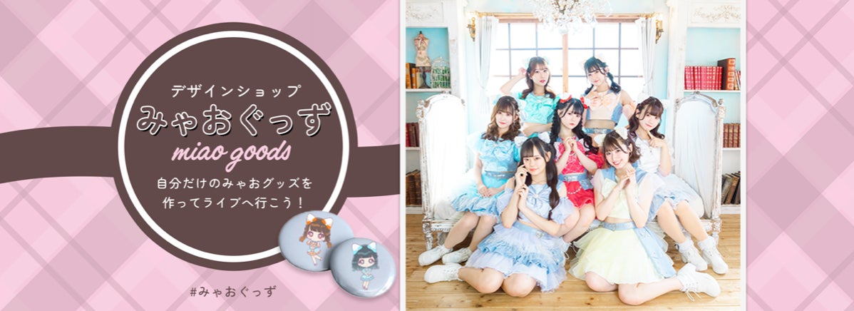 アイドルグループ『miao』とオリジナルグッズ作成のUP-Tがコラボレーションして『みゃおぐっず』をオープン。メンバーのかわいい2Dイラストやメンバーが描き下ろしたデザインがスタンプになって登場。このスタンプを自由に配置してオリジナルみゃおぐっずでライブ会場をさらに盛り上げることができるアイテムを作成ができます。