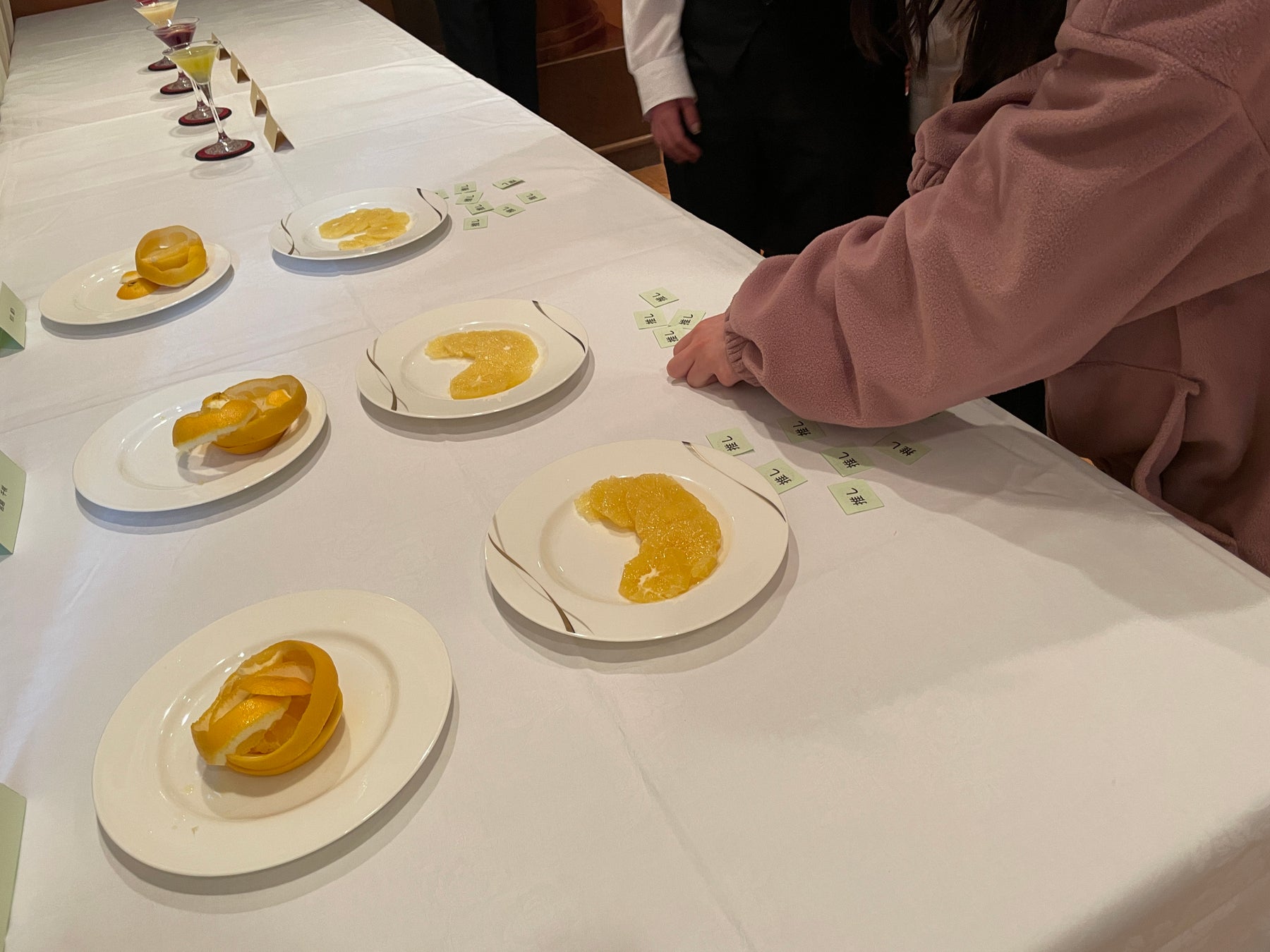 フルーツカービング部門では、予選会を通過した3名がオレンジカービングを披露し、演技や作品に対して「推し」投票を行いました。