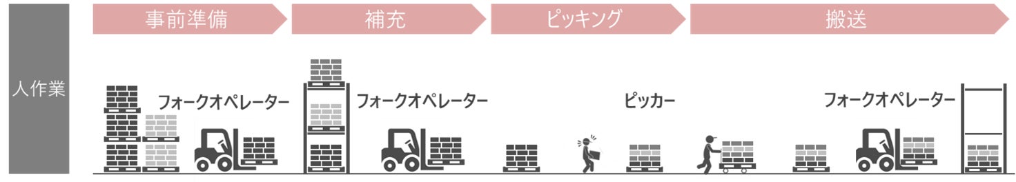 現在、多くの企業で、商品を倉庫や工場内の保管場所から取り出して配送先ごとに仕分けるピッキング作業のほとんどを人の手を介して行っています。飲料業界でも、飲料が入った重量のある段ボールを人の手を介してピッキングしていることから、重筋作業として負担が大きいことや、誤作業のリスクがあることが課題となっています。また、2024年問題に関連して、労働時間管理が厳格になり重筋作業が要求される現場での作業オペレーター確保が課題となっています。