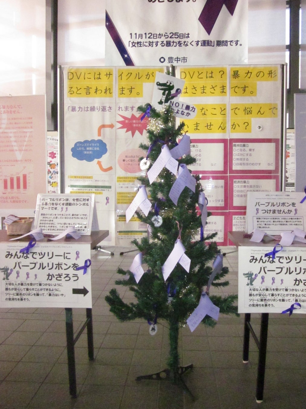 ・〈参加型展示〉ツリーにパープルリボンを飾り、「暴力はいや」