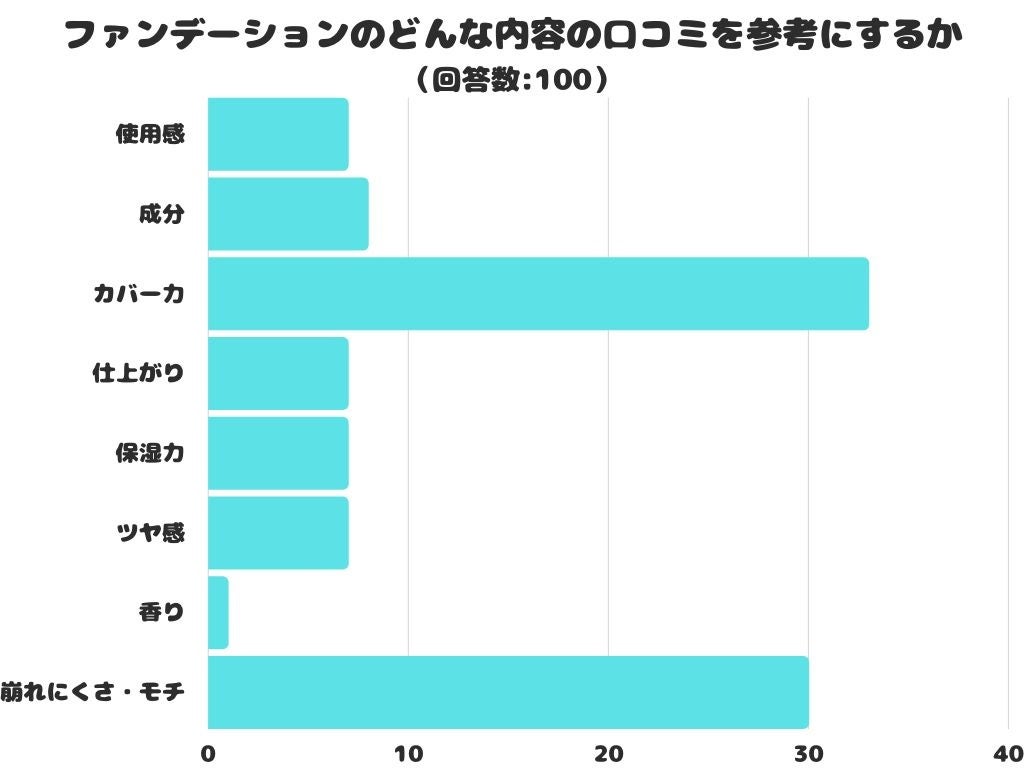 ファンデーションのどんな内容の口コミを参考にするかをアンケートにて調査したところ、1位は「カバー力」でした。