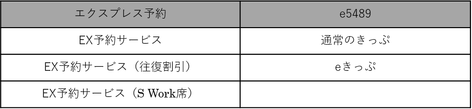 ・「エクスプレス予約」または「e5489」の以下商品が対象となります。